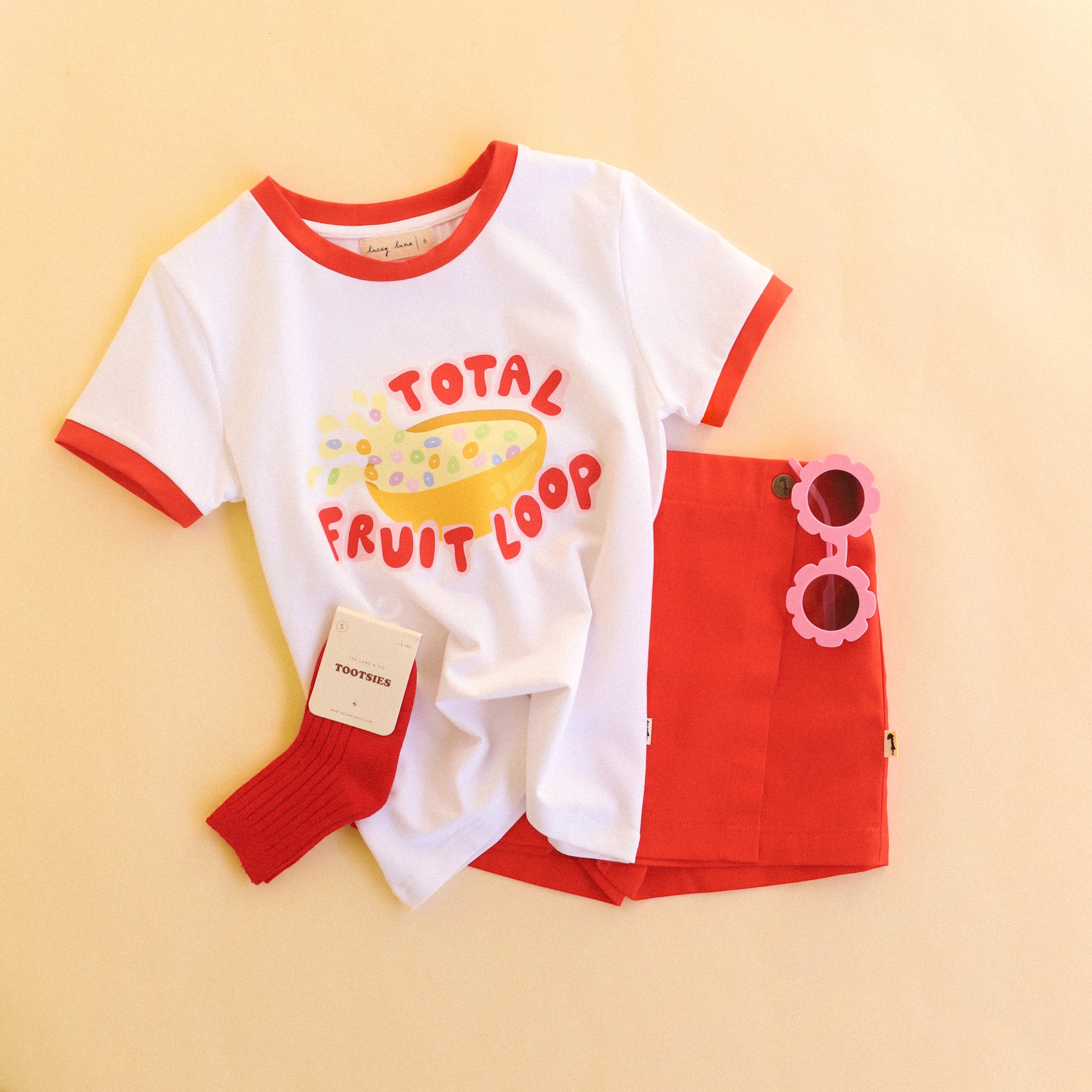 Be the ultimate "fruit loop" in our comfy and cool girls' ringer tee! Who doesn't love a comfortable kids t-shirt that's versatile and can be easily styled to look fabulous?! Well, our Fruit Loop tee can provide all of that. This super comfy white tee features a pop of red trim around the neckline and sleeves, is lightweight and easy to wear with "Total Fruit Loop" across the front, making it a fun addition to any outfit.