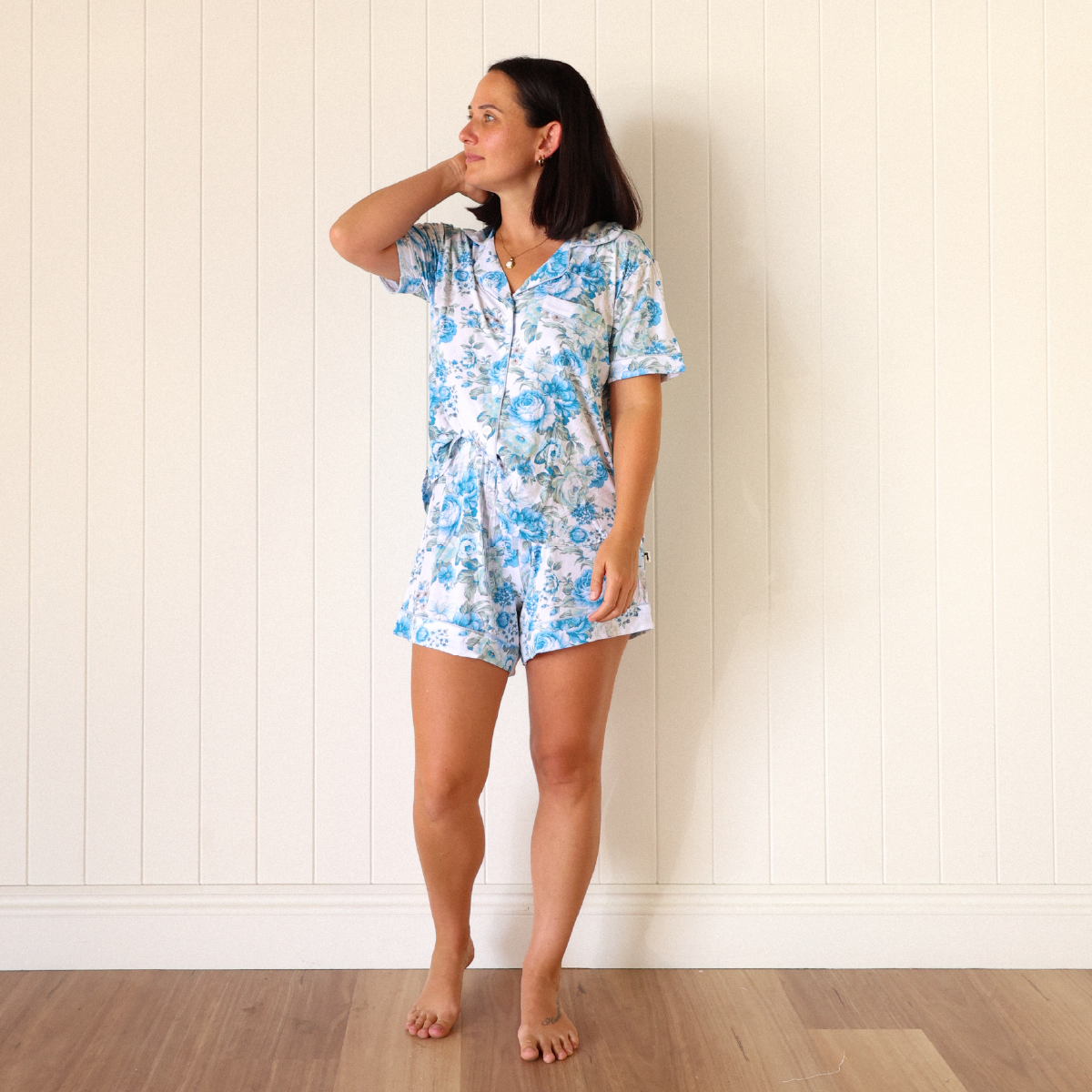 Slip into ultimate comfort with our Hilary Mum Pyjamas crafted from luxuriously soft bamboo viscose that is breathable lightweight and silky smooth against the skin. Featuring our classic floral print with layered blooms in soft blue and muted grey tones on a crisp white base designed right here at Lacey Lane paired with our iconic logo buttons for that extra special touch. Perfect for lazy mornings afternoon naps or simply embracing your most relaxed self.